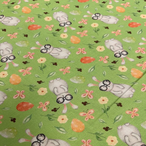 Percal estampado infantil con conejos fondo arena