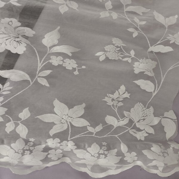 Tejido de visillo para cortinas con bajo acabado en hondas y flores en degradé |